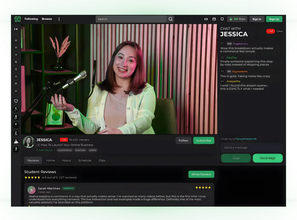Master new skills in Stocks, Real Estate, Day-Trading, E-commerce, AI, Sports betting, Crypto, Business, Marketing, and more from industry experts